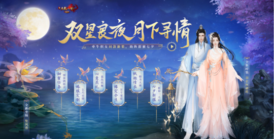 又是整年织女牛郎鹊桥相会的生活!少侠们可前去西湖灵鹊仙子处接取鹊桥相会任务。捕获灵鹊,为牛郎和织女搭建鹊桥,助多情人七夕相聚,同一时间还可得到 1枚鹊翎 、经历奖赏及6个相思意,用于换取特定奖赏。